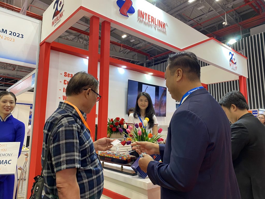 Interlink đã nhận được nhiều sự quan tâm và ghé thăm từ phía Khách tham quan. Trong vòng 3 ngày diễn ra triển lãm chúng tôi đã có dịp gặp gỡ, trò chuyện và tư vấn những vấn đề liên quan đến các hoạt động Logistics trong xuất nhập khẩu và lưu trữ hàng hóa với những vị Khách tham quan và Doanh nghiệp tham gia triển lãm. Là một trong những công ty cung ứng dịch vụ Logistics tốt nhất Việt Nam, Interlink tự tin sẽ mang đến cho Quý khách trải nghiệm dịch vụ tuyệt vời nhất!