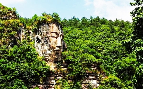 Đầu của bức tượng Phật bán thân này cao hơn 4 m so với tượng Lạc Sơn Đại Phật ở Tứ Xuyên, được UNESCO công nhận là di sản thế giới năm 1996. Nguồn gốc của hai bức tượng này có thể chung một truyền thuyết.