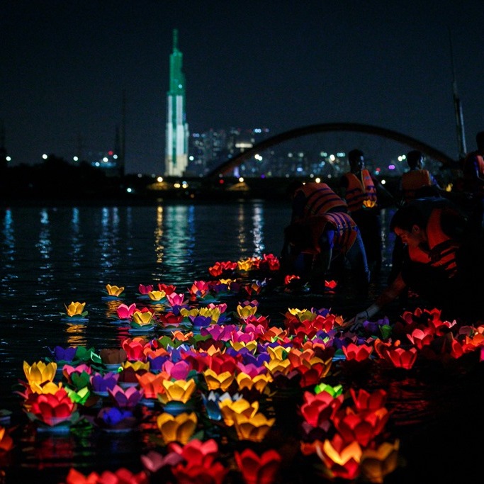 Nghi lễ thả hoa đăng mang ý nghĩa của một nhu cầu tối cao đối với người quá cố, đây là một nghi lễ truyền thống có nguồn gốc Phật giáo. Hàng trăm hoa đăng được thắp sáng lấp lánh dưới nước để mang đến những điều ước, hòa bình, hạnh phúc và sự tôn trọng của chúng ta dành cho những người đã khuất.